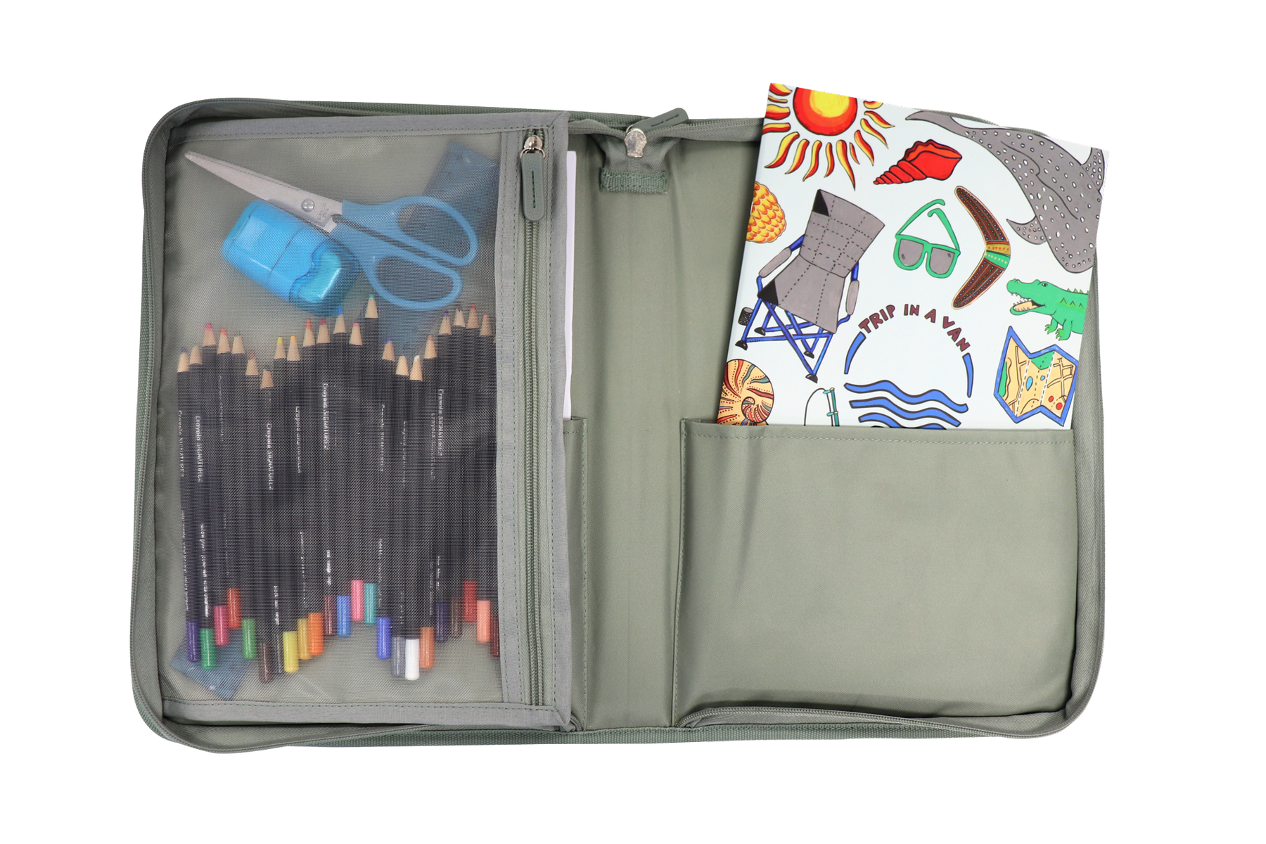 - Built-in large zip pencil case